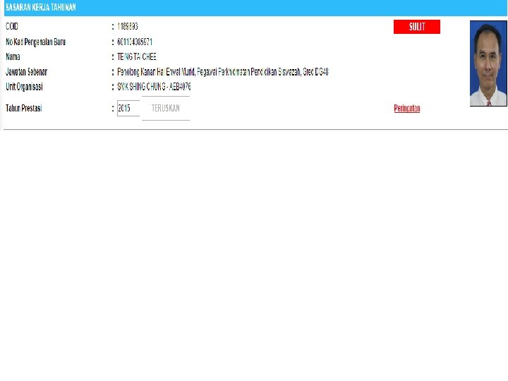 Terdapat 2 bahagian yang perlu diisi oleh guru iaitu : A. Sasaran Kerja Tahunan (SKT) B. Penilaian Prestasi • Di dalam entri ini, saya akan tunjukkan cara mengisi LNPT menggunakan HRMIS 2. 0.