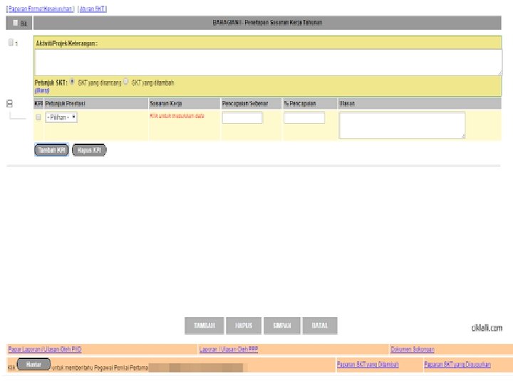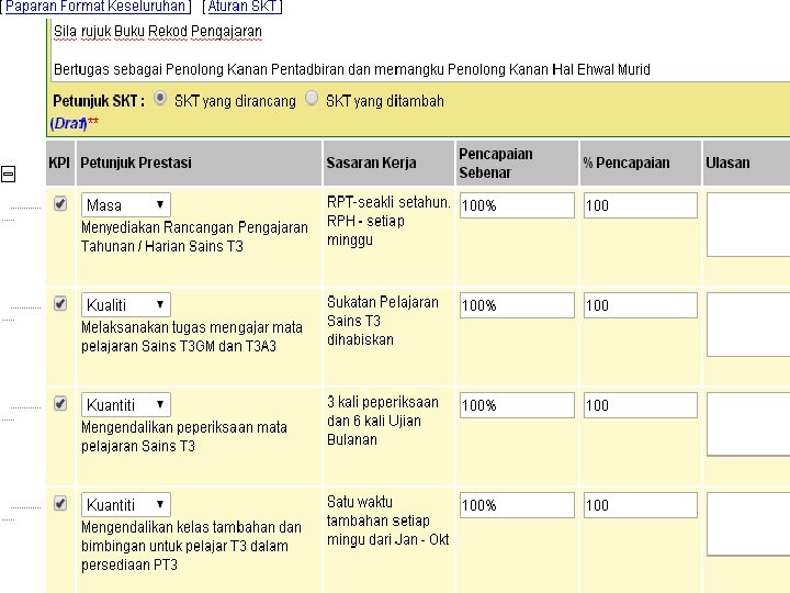 Terdapat 2 bahagian yang perlu diisi oleh guru-guru iaitu : A. Sasaran Kerja Tahunan (SKT) B. Penilaian Prestasi