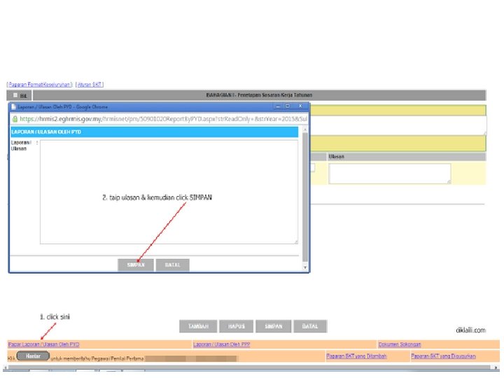 4. Setelah selesai mengisi dan menyimpan SKT, jangan lupa untuk click pada Papar Laporan / Ulasan Oleh PYD. Taip ulasan pada ruangan Laporan / Ulasan dan setelah siap, click SIMPAN.