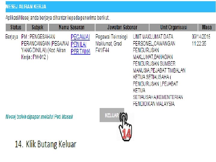 • Setelah berpuas hati dengan Kegiatan Dan Sumbangan Di Luar Tugas Rasmi dan Latihan yang telah diisi diruangan berkenaan, click pada ruangan *Saya mengesahkan bahawa kenyataan di atas adalah benar dan kemudian anda bolehlah click HANTAR untuk pemberitahuan Pegawai Penilai Pertama. * Jangan lupa untuk mencetak LNPT yang telah siap diisi untuk rujukan dan simpanan anda.