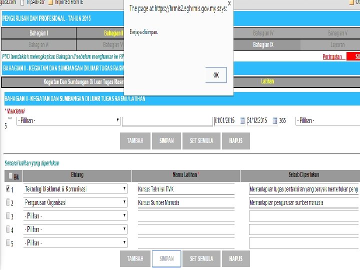 Click Tambah sekiranya ingin menambah apa-apa maklumat dan kemudian click Simpan.