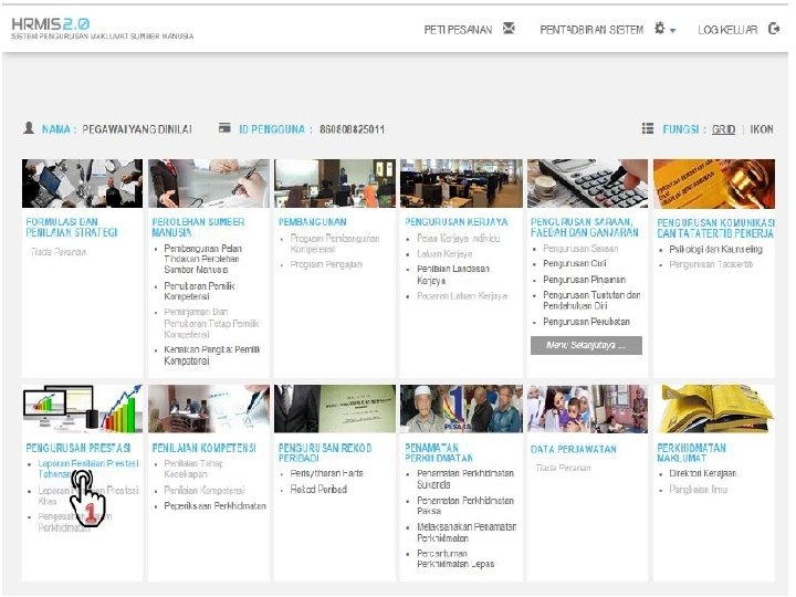 1. Click pada menu FUNGSI > Penilaian Prestasi > Pegawai Yang Dinilai