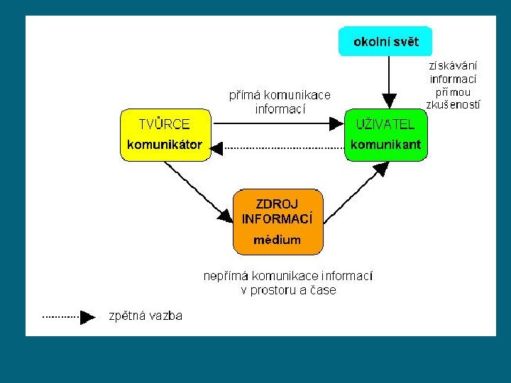 Sociální komunikace • sdělování a přijímání informací • souvisí s interakcí • základní typy – meziosobní – skupinová – složitější komunik. síť – masová – média • co si sdělujeme – téma (obsah) – význam – výklad, interpretace