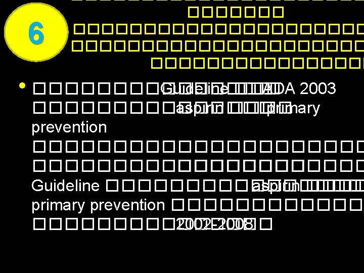 Comment • A meta-analysis of primary prevention trials showed that aspirin therapy – significantly reduced the risk of total coronary heart disease, nonfatal myocardial infarction, and total cardiovascular events – nonsignificant trend for decreased risk of stroke, cardiovascular mortality, and all-cause mortality. • Previous studies investigating the effects of low-dose aspirin on primary prevention of cardiovascular events did not enroll solely diabetic patients.