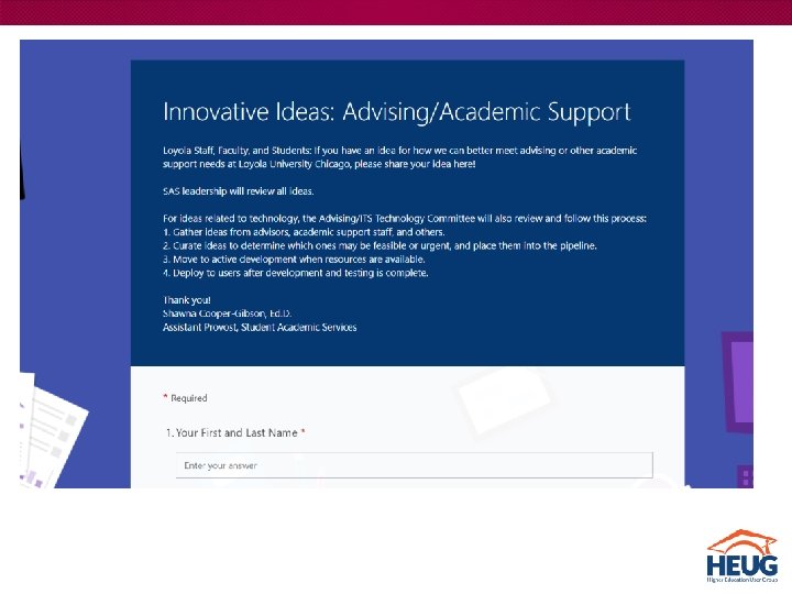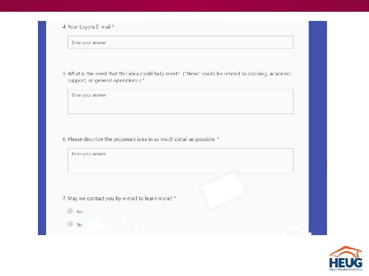 1. Open the HEUG Events App on your phone, tablet, or laptop 2. Click on this session in your schedule 3. Under the RESOURCES section click the “Survey” link