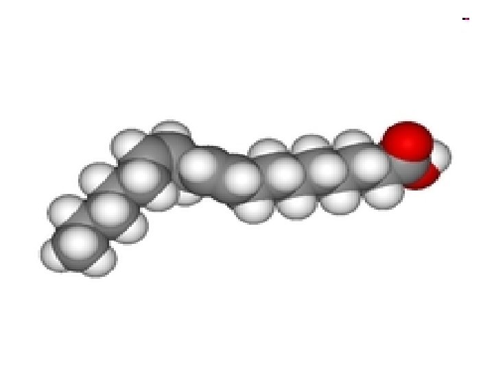 Acidos grasos • Son las unidades básicas de los lípidos saponificables, y consisten en moléculas formadas por una larga cadena hidrocarbonada con un número par de átomos de carbono (12 -22) y un grupo carboxilo terminal. La presencia de dobles enlaces en el ácido graso reduce el punto de fusión. Los ácidos grasos se dividen en saturados e insaturados.