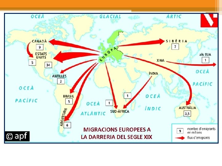 Conseqüències de la colonització Avenços europeus i transformacions econòmiques - construcció d’infraestructures - conreus de noves terres i construcció de noves indústries Modificació del paisatge i hàbitat natural └ pèrdua de conreus tradicionals - introducció de grans plantacions (benefici metròpoli) - indígenes treballen a les plantacions a canvi de salari baix. Ara han de comprar aliments i estris economia de monetària i de mercat - fi artesania local - construcció hospitals + mesures higièniques → augment de la població, trenca equilibri - aculturació: escoles + cristianisme → pèrdua de cultura autòctona (nous valors), pèrdua d’identitat (ex. Indis nord-americans) - canvi estructura social - ritme de treball, vida urbana - funció dels ancians, estructura familiar - NO igualtat → segregació (apartheid)