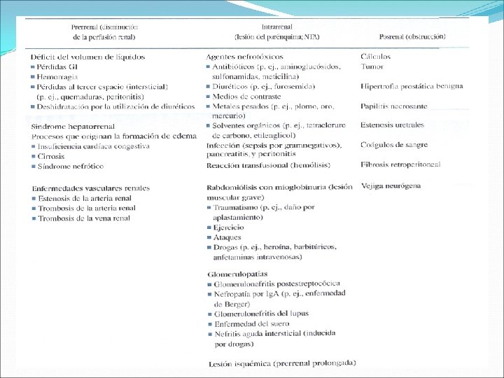 Causas comunes asociadas con hipovolemia Perdidas GI anormales Vómitos Aspiración nasogástrica Diarrea y drenaje intestinal Perdidas cutáneas anómalas Diaforesis excesiva por fiebre o ejercicio, quemaduras o fibrosis quística Perdidas renales anormales Terapia diurética Diabetes insípida Enfermedad renal (formas poliúricas) insuficiencia suprarrenal. Diuresis osmótica (diabetes mellitus no controlada, estudio después de un contraste) q Desplazamiento del plasma al liquido intersticial (LI) o al tercer espacio: • Peritonitis • Obstrucción intestinal • Quemaduras • Ascitis q Hemorragia q Ingesta alterada • Coma • Privación de líquidos q • • •