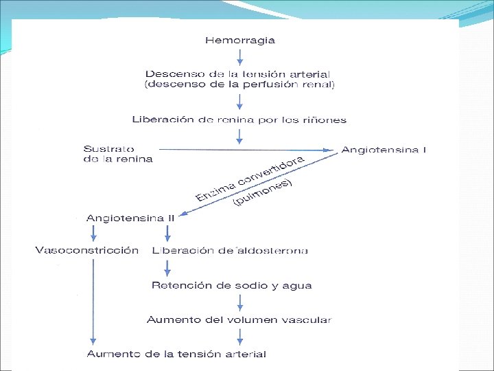Regulación de la Volemia CAMBIOS EN EL VEC Barorreceptores y Receptores de estiramiento Br. Intravasculares Alta presión Dependientes del glosofaríngeo y neumogástrico Carótidas y Cayado aórtico Reflejo miogénico Estrés de rozamiento Lecho vascular Síntesis y Liberación de ON Aumento del Volumen Quimiorreceptores intracraneales ØPresión en el Sinusoide hepático Superficie del III ventrículo ØActividad aferente del neumogástrico Aumento de Presión transmural Modula y evita el exceso Distensión Natriuresis Mecanorreceptores intrahepáticos Síntesis de endotelina Vasoconstricción INTEGRACIÓN Hipotálamo ØActividad eferente hacia riñón Sensibles a la tonicidad plasmática Y del LCR
