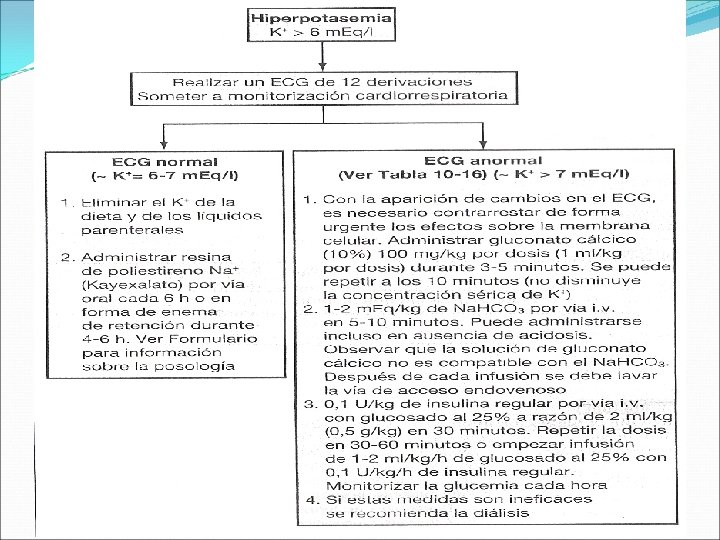 IV. Alteraciones del Potasio • Hipokalemia: Potasio menor de 3. 5 m. Eq/lt • Hiperkalemia: Potasio mayor de 5. 5 m. Eq/lt Hipokalemia: Cuando el déficit no es muy severo y el paciente se encuentra asintomático, se recomienda el empleo de soluciones con potasio a 60 m. Eq/lt (6%)