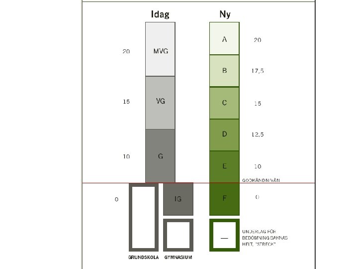 Nytt inom förskola och skola; • Ny skollag • Reviderade läroplaner i förskola och grundskola • Nya kursplaner • Ny gymnasieskola • Nya allmänna råd • Ny lärarutbildning • Ny betygsskala, betyg från åk 6 • Lärarlegitimation