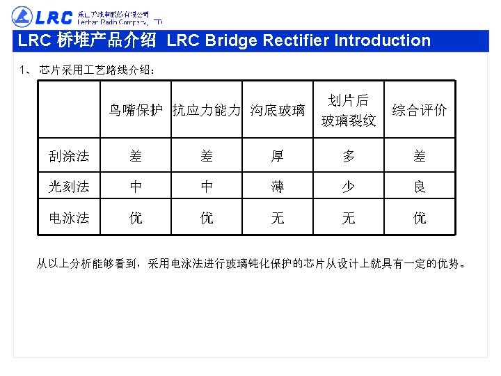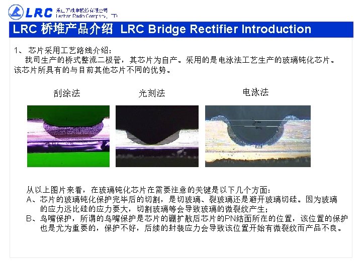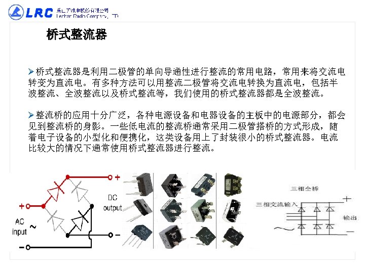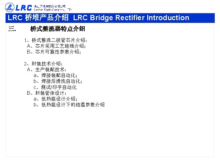 LRC 桥堆产品介绍 LRC Bridge Rectifier Introduction 一. LRC桥式整流器 艺流程