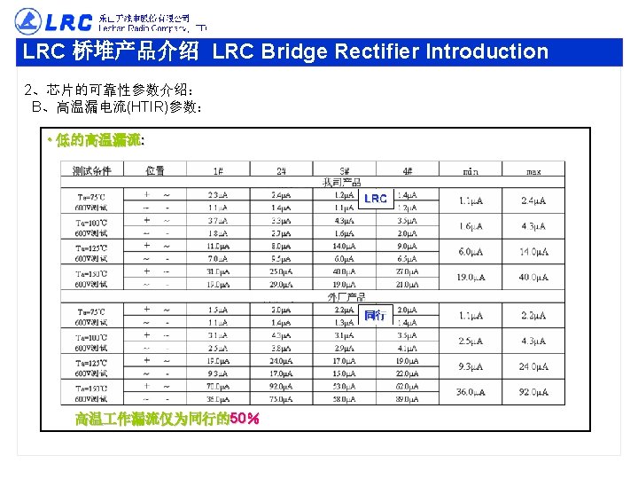 LRC 桥堆产品介绍 LRC Bridge Rectifier Introduction 六. LRC整流桥与其它公司产品名称对应表