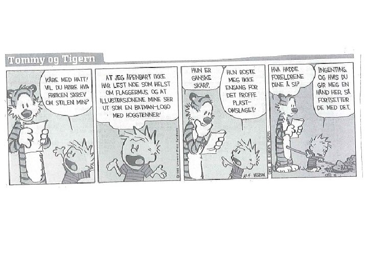 Når kan vi bruke tenkeskriving? • • Introduksjon til nytt tema Oppsummering av tema For å få til hyppige skriveaktiviteter Som støtte for samtale i klassen/gruppa Som igangsetter for skriving av lengre tekst I forbindelse med tekstlesing - Stopp ved et høydepunkt: ʺ Hva tror dere skjer videre? ʺ • Læringslogg - Hva har jeg lært i dag? - Hva var artig? - Var det noe som var vanskelig? - Er det noe jeg øve mer på? • Tenkeskriving kan brukes i alle fag!