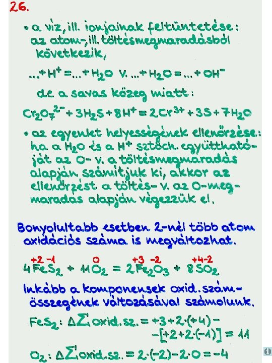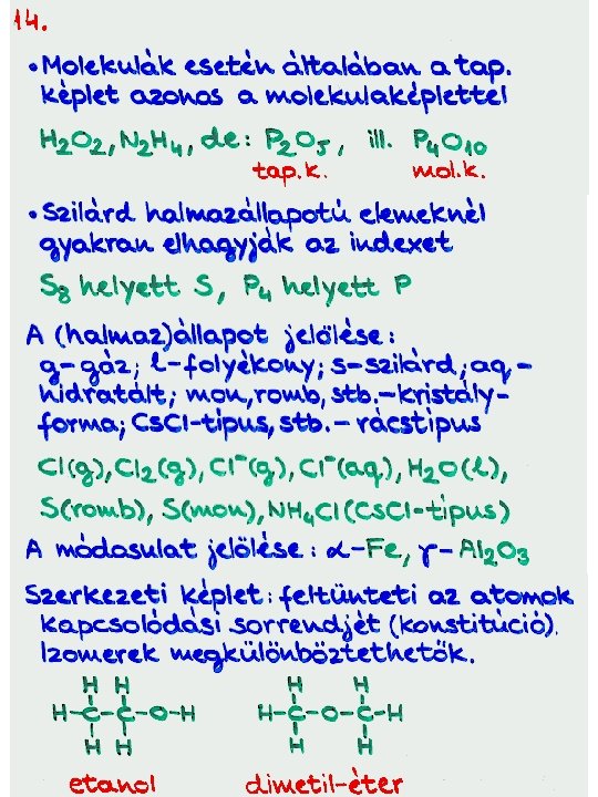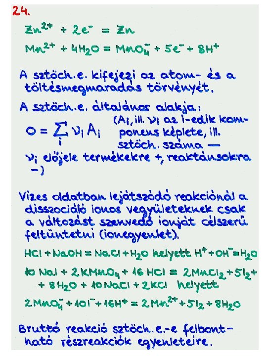 http: //www. kfki. hu/~cheminfo/hun/eloado/egyenlet/egy. htm HOGYAN RENDEZZÜNK REAKCIÓEGYENLETEKET? Tóth Zoltán Tartalomjegyzék A reakcióegyenletek rendezése alapvetõ fontosságú mind a kémiai ismeretek megszerzése, mind azok alkalmazása szempontjából. A különbözõ típusú és bonyolultságú reakcióegyenletek rendezésének régóta ismertek általános módszerei, de a Journal of Chemical Education hasábjain ebben a témában évrõl-évre megjelenõ cikkek is jelzik, hogy azokat mindig lehet finomítani, alakítani. Az egyenletrendezési eljárások kutatásának kettõs célja van: egyrészt a már ismert módszerek finomításával, egyszerûsítésével, elemzésével segítséget nyújtani az egyenletrendezés különbözõ szinten történõ tanításához, másrészt a matematika és a számítástechnika eszközeinek felhasználásával a kémiai kutatás számára is hasznosítható eljárásokat fejleszteni ki. Amikor egy anyagi rendszerben kémiai reakció megy végbe, egy dologban biztosak lehetünk, hogy a különbözõ típusú atomok száma a reakció során nem változik meg. Az atomok megmaradásának törvényét a különbözõ alkotó elemekre felírt anyagmérleg-egyenletekkel fejezhetjük ki. Ezek megoldásaként kapjuk a rendezett reakcióegyenletben szereplõ sztöchiometriai együtthatókat. A reakcióegyenletek rendezésének általános módszere tehát, az anyagmérleg alapján történõ rendezés. A kémiai átalakulás lényegének kiemelésére szoktunk használni olyan reakcióegyenleteket is, amelyekben nem (vagy nemcsak) semleges részecskék (molekulák, esetleg atomok) szerepelnek, hanem töltéssel rendelkezõ részecskék (anionok, kationok, elektronok) is. Az ilyen egyenletek rendezésekor az anyagmérleg mellett figyelembe kell venni a töltésmegmaradás elvét leíró töltésmérleget is. A töltésmérleg figyelembevétele nem feltétlenül szükséges, de hasznos lehet a semleges részecskékbõl álló reakcióegyenletek rendezésekor is. Ilyenkor a töltésmegmaradás elvét az alkotó atomok névleges töltésére (oxidációs számára) írhatjuk fel. A bevezetõben már említettem, hogy a reakcióegyenletek rendezése alapvetõ fontosságú a kémiával foglalkozó diák és kutató számára, de azt látnunk kell, hogy a különbözõ egyenletrendezési módszerek (még ha olyan alapvetõ természeti törvényeken alapulnak is mint a tömegmegmaradás elve és a töltésmegmaradás elve) matematikai-logikai eljárások, és nem érdemes ezeknek különösebb kémiai jelentést tulajdonítani. Kémiai jelentése csak a rendezett reakcióegyenletnek van, az egyenletrendezési eljárásnak nincs. A tanulmány elkészítését az OTKA (T-023144/1997. ) is támogatta. Tartalomjegyzék: 1. fejezet Reakcióegyenletek rendezése alapfokon 1. 1. Rendezés "ránézésre", próbálgatással 1. 2. Egy egyszerû algoritmus: a láncszabály 2. fejezet Reakcióegyenletek rendezése középfokon 2. 1. Rendezés az oxidációs szám alapján 2. 2. Rendezés többismeretlenes egyenletrendszerrel: az algebrai módszer 3. fejezet Reakcióegyenletek rendezése felsõfokon 3. 1. Egy konvenció határain túl: rendezés szokatlan oxidációs számokkal 3. 2. Egyenletrendezés számítógéppel Függelék F. 1. Néhány nem mindennapi reakcióegyenlet F. 2. Egy felmérés és tanulságai Vissza az Elôadóba