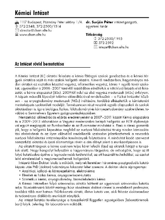 ÁLTALÁNOS KÉMIA előadás (altkemk 17 ea) Előadók: Szalay Péter, Szalay Roland, Tarczay György (ELTE, Szervetlen Kémiai Tanszék) Egyetemi honlap: www. elte. hu Intézeti honlap: www. chem. elte. hu