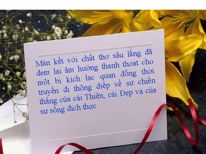 III. TỔNG KẾT Nội dung Qua đoạn trích vở kịch Hồn Trương Ba, da hàng thịt, Lưu Quang Vũ muốn gửi tới người đọc thông điệp: Được sống làm người quý giá thật, nhưng được sống đúng là mình, sống trọn vẹn những giá trị mình vốn. Bµi có và theo đuổi còn quý giá hơn. Sự sống chỉ thực häc: sự có ý nghĩa khi con người phải luôn biết đấu tranh với những nghịch cảnh, với chính bản thân, chống lại sự dung tục, để hoàn thiện nhân cách và vươn tới những giá trị tinh thần cao quý.