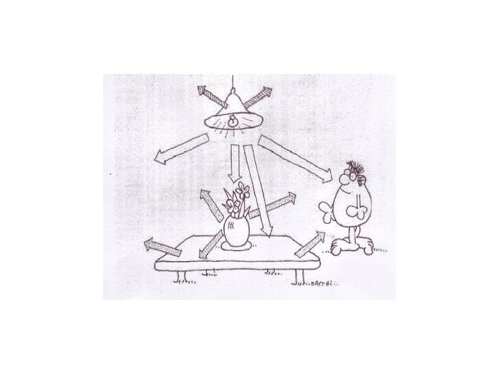 Modello di sorgente • Da una piccola sorgente (es: lampadina) partono raggi in tutte le direzioni e noi vediamo quelli che colpiscono i nostri occhi • Tutti gli oggetti, se illuminati, rimandano indietro (diffondono) la luce che vi incide e vanno considerati anch’essi come sorgenti (secondarie).