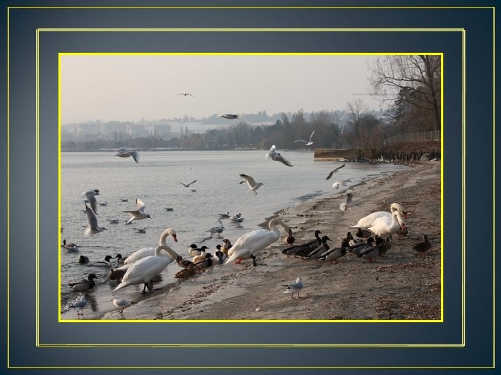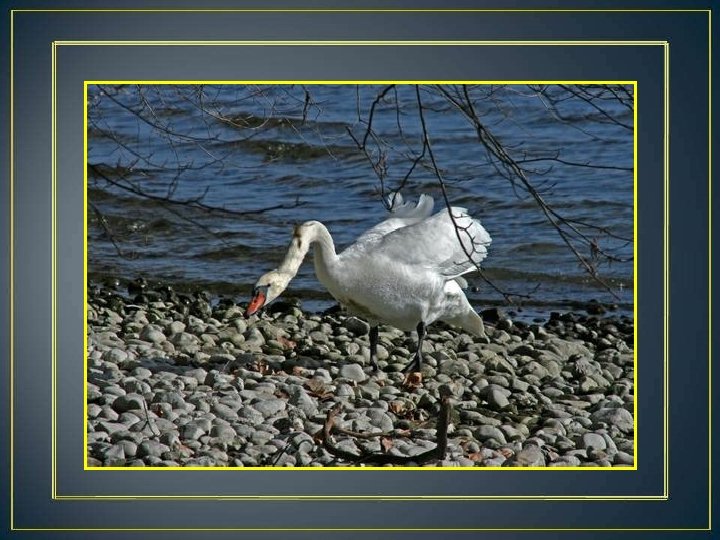 Le Cygne est connu pour son courbé et ses belles plumes blanches, au nombre d’environ 25’ 000 pour un adulte. Ses deux pieds sont palmés. Son audition et sa vision sont aiguës. Son bec orange - noir est surmonté d’un tubercule noir, celui-ci plus gros chez le mâle, au printemps (période des amours).