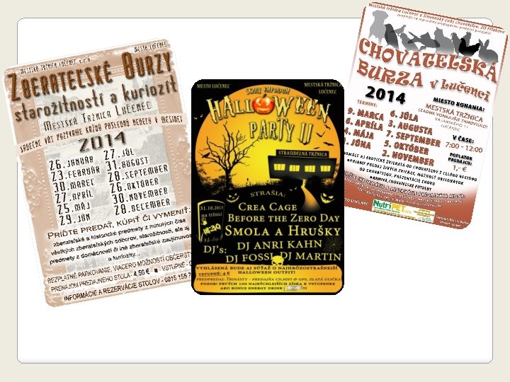 �Stále podujatia - Fašiangy - Zberateľské burzy starožitností a kuriozít - Chovateľská burza - Halloween party (zatiaľ 2 ročníky) - PLODY Novohradu - Štefánský čurbes