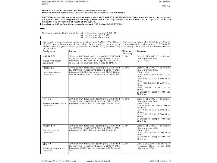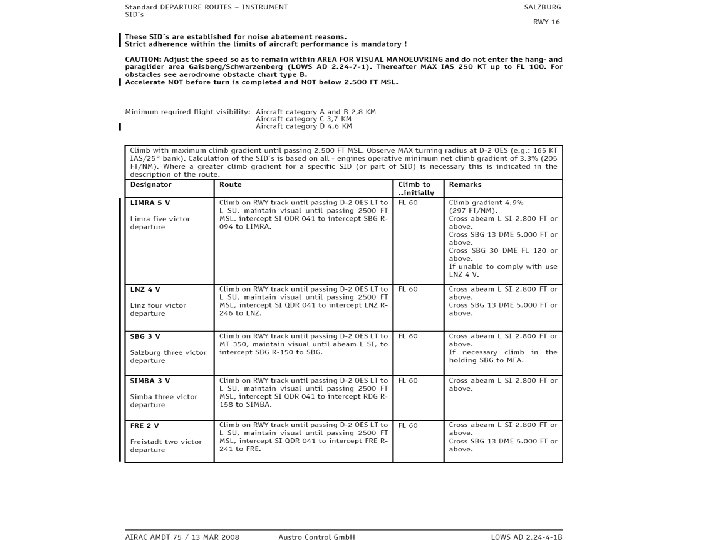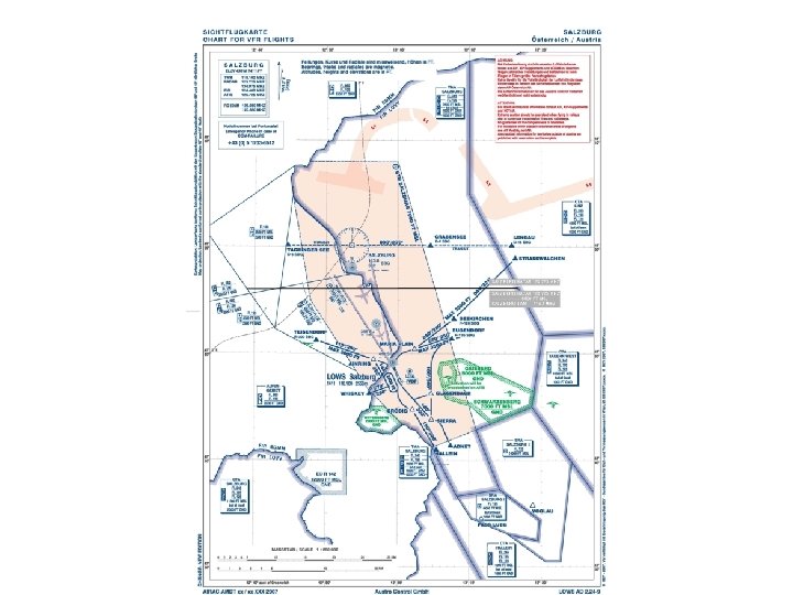 Was erwartet die Flugverkehrskontrollstelle Salzburg? • Prinzip: je höher ich mich im LR E bewege umso eher sollte ich mich bei der zuständigen Flugverkehrskontrollstelle melden • Prinzip: je näher ich seitlich an LR D heranfliege umso mehr stelle ich Verkehr für einen Instrumentflug dar • Prinzip: Flugverkehrskontrollstelle ist eine Dienstleistungsstelle, die Sicherheit zur Verfügung stellt: - Staffelung/Trennung zu IFR und - Verkehrsinformation bzw Trennung zu VFR sowie - Hilfestellung falls erforderlich