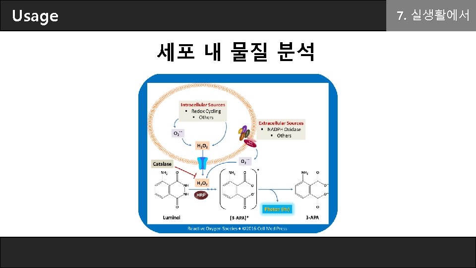 Chemical Mechanism 5. 반응 기전 2 H 2 O 2 → O 2 + 2 H 2 O ( irreversible ! ) aminophthalate ion