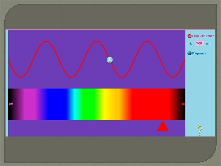 2 - Composition de la lumière blanche : La lumière blanche est composée d ’une multitude de radiations colorées allant du violet au rouge. 400 Violet 420 Bleu 500 Vert 575 Jaune 585 Orange 620 Spectre de la lumière blanche 620 Rouge 750 l en nm