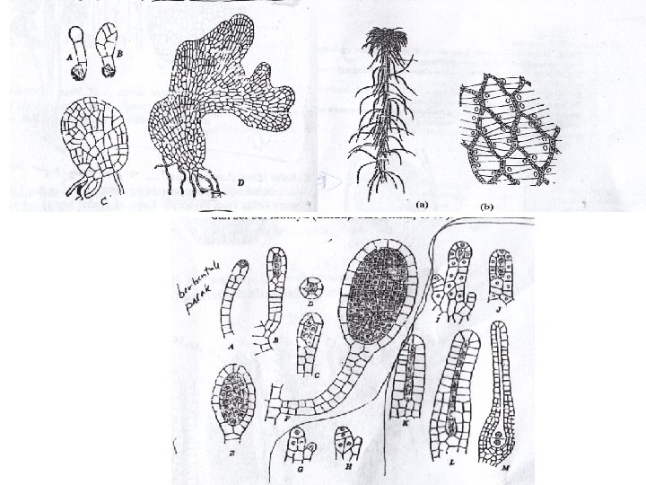 Reproduksi lumut tanduk • • • Secara aseksual Melalui pembentukan umbi (tuber) Pada lumut tanduk juga dapat di bentuk kuncup (gemma) Lumut yang tumbuhnya merayap pada waktu kekeringan bagian ujungnya masih dapat bertahan. Bila lingkungan tidak lagi kering maka dapat tumbuh kembali dengan jumlah individu yang lebih banyak. Apospori.