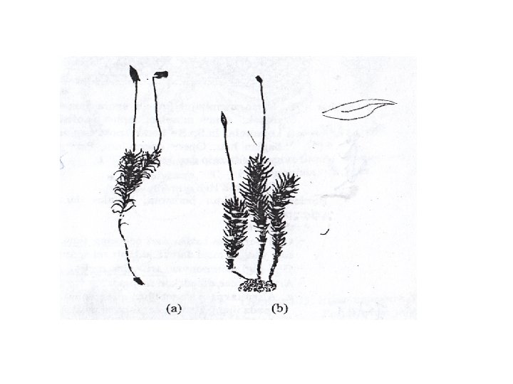 Tumbuhan Lumut Daun (Musci)/Bryopsida Ciri-ciri v Mempunyai daun, batang dan rhizoid multiseluler v Berkembang dari protonema v Gametofit tumbuh tegak atau merayap v Arkegonium membentuk kaliptra yang menempel diatas kapsul v Kapsul bagian bawah fotosintetik dan mempunyai stomata v Kapsul mempunyai kolumela, pecah dengan gigi-gigi peristom, tidak dijumpai adanya elater. v Tangkai (seta) bertambah panjang secara perlahan selama perkembangan kapsul. Kuat dan biasanya berwarna. v Daun hanya terdiri dari satu lapis sel dengan rusuk tengah, tersusun spiral atau melingkari batang.
