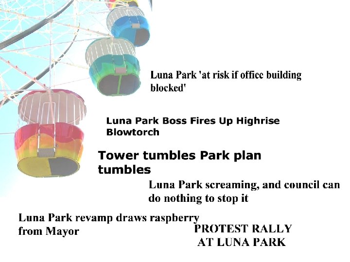 We Want More …. . • The managing director of Luna Park Sydney, Peter Hearne, said the company needed to pay off $10 million in debt with the proceeds of the 14 -storey building. … SMH 31 May