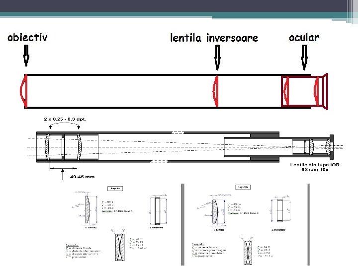 Alte tipuri de lunete: Pentru observarea obiectelor formand imagini virtuale, drepte si marite, fara sisteme afocale Ø Luneta cu vehicul (format dintr-o lentila convergenta ce poate fi deplasata intre obiectiv si ocular) Ø Luneta cu vedere laterala