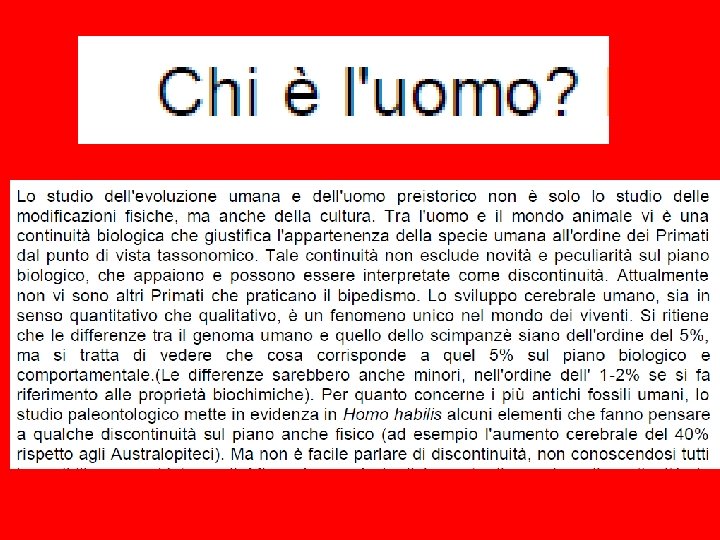 Lo sviluppo dell’uomo nel quadro della teoria dell’Evoluzione Non permette di comprendere e spiegare • la continuità biologica • la discontinuità culturale