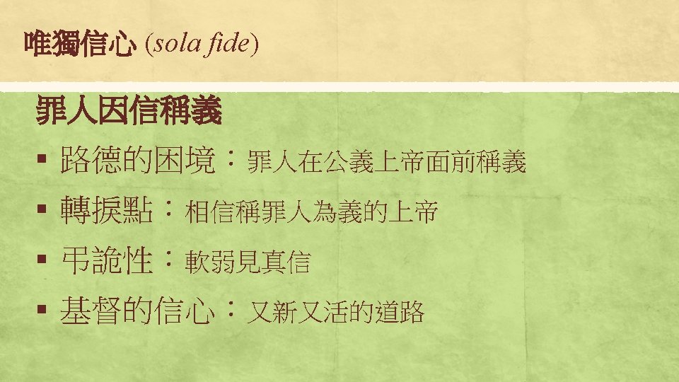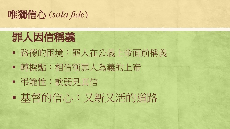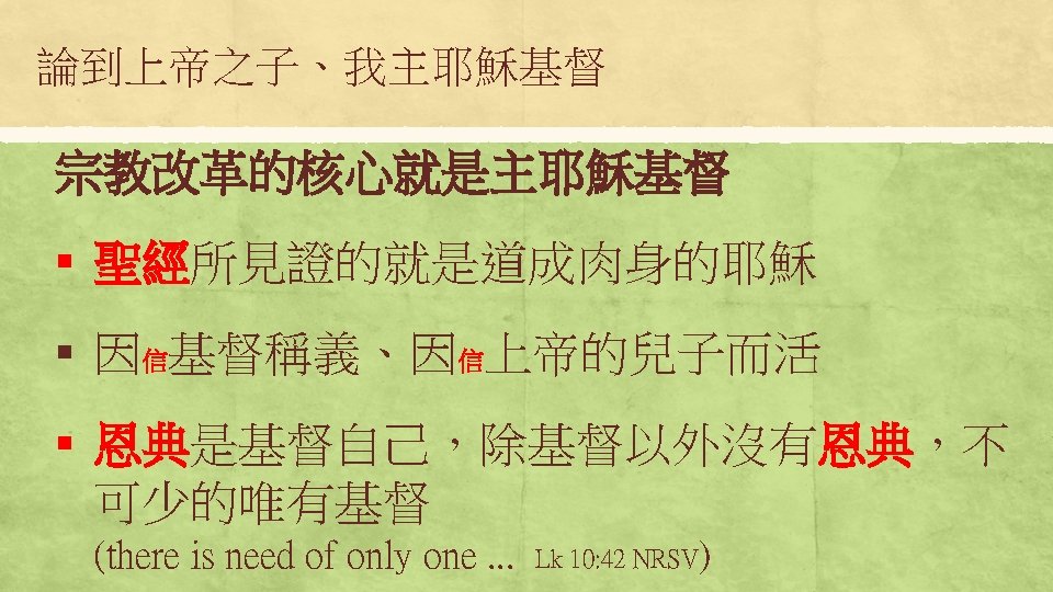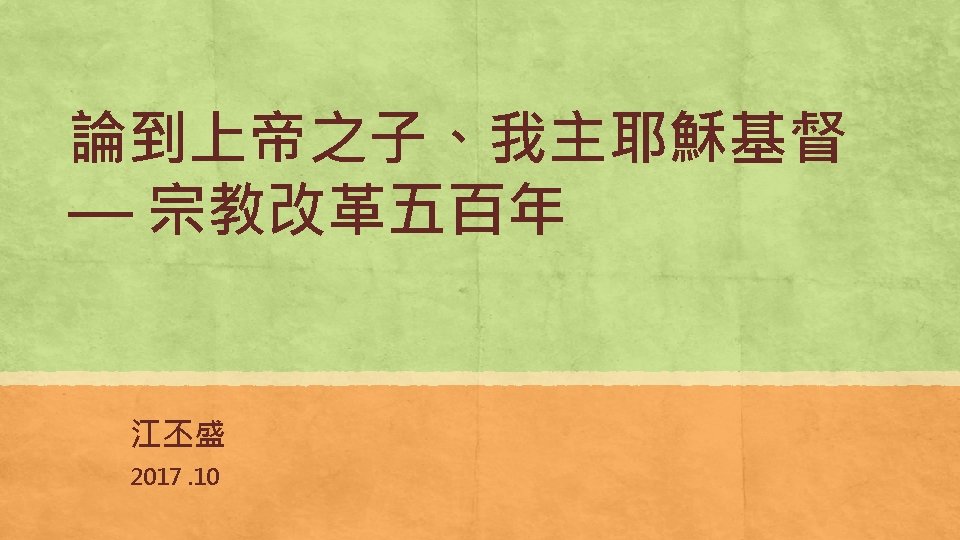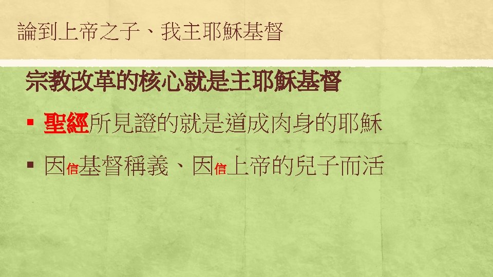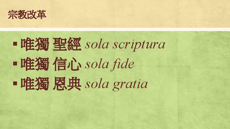 宗教改革 活的信仰,持續更新 Ecclesia reformata semper reformanda
