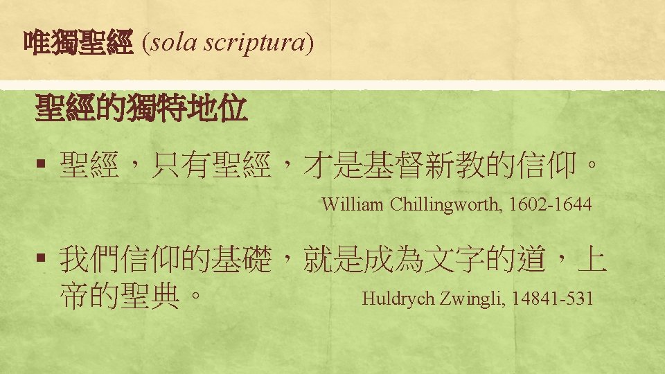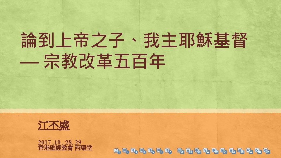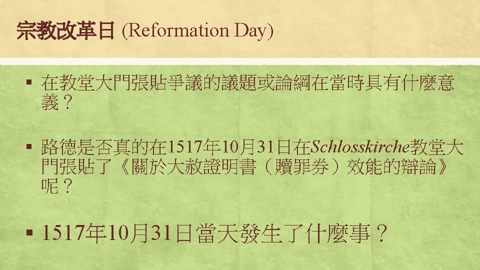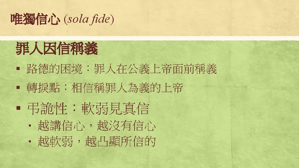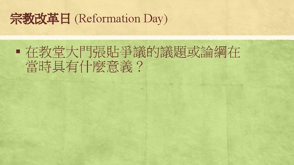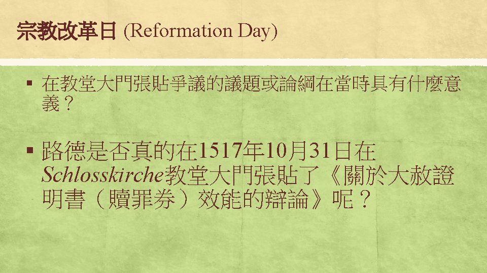 宗教改革 活的信仰,持續更新 Ecclesia reformata semper reformanda