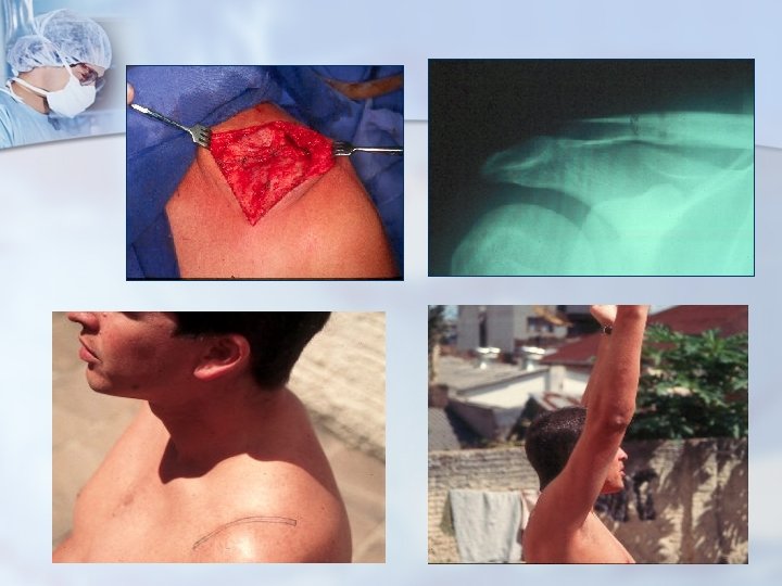 Tratamento cirúrgico da luxação acrômioclavicular completa M. A. C. Veado e cols. Rev. Bras. Ort. 2000 Operou 21 pac. Com LAC, grau III (18), Grau IV (01), grau V (02). Fases aguda e crônica. Téc. de Weaver-Dunn modificada por Rockwood. Resultados satisfatórios tem sido obtidos com o tratamento conservador, mas muitos acreditam na necessidade da cirurgia. 95, 2% de excelentes e bons resultados e 4, 8% de resultado ruins.