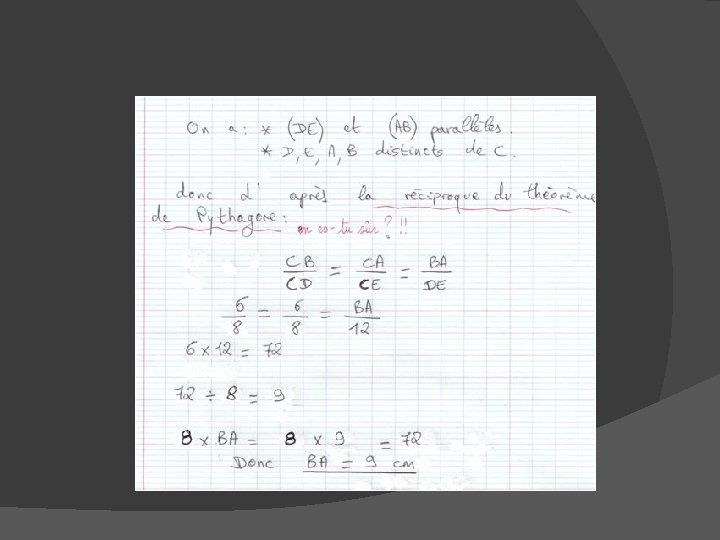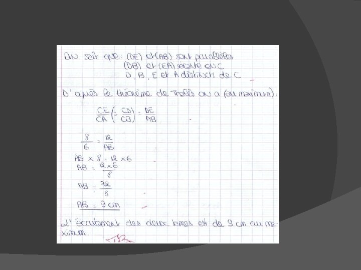 Productions d’élèves (Sur 50 copies, un seul élève n’a pas abouti au résultat)