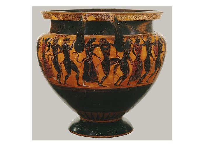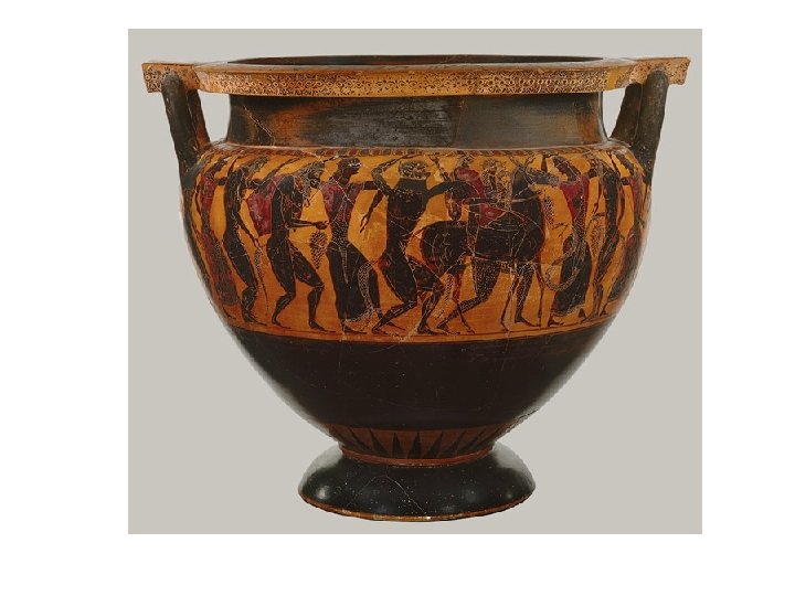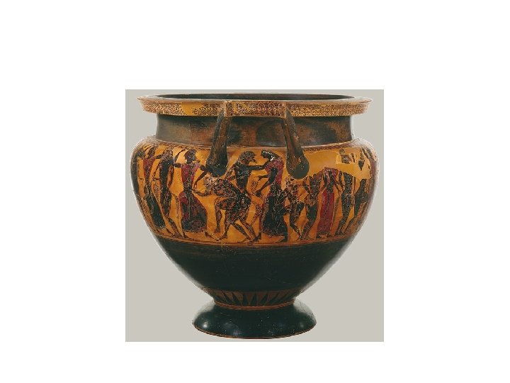 Development • In black-figure vase painting before the last quarter of the sixth century B. C. , the decoration of large elaborate kraters tended to be mythological. • Exceptionally significant as one of the first column kraters on which wine, women, and song are presented.