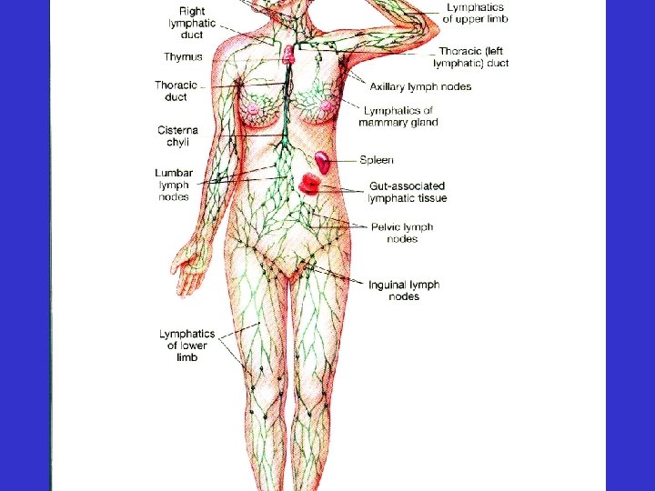 Lymphatic System Lymphatic System Functions Immunity Lipid transport Slides: 53 Download presentation Lymphatic System Lymphatic System • Functions – Immunity – Lipid transport from digestive system – Drains interstitial fluid back to blood Lymphatic System Lymphatic System • Components Lymphatic System • Components – Lymphatic tissue Lymphatic System • Components – Lymphatic tissue • Macrophages Lymphatic System • Components – Lymphatic tissue • Macrophages • T cells Lymphatic System • Components – Lymphatic tissue • Macrophages • T cells Lymphatic System • Components – Lymphatic tissue • Macrophages • T cells • B cells Lymphatic System • Components – Lymphatic tissue • Macrophages • T cells • B cells Lymphatic System • Components – Lymphatic tissue • Macrophages • T cells • B cells • Reticular CT framework – Lymphatic organs – Lymphatic organs • Composed of lymphatic tissue – Lymphatic organs • Composed of lymphatic tissue surrounded by CT capsule – Lymphatic organs • Composed of lymphatic tissue surrounded by CT capsule – lymph nodes – Lymphatic organs • Composed of lymphatic tissue surrounded by CT capsule – lymph nodes – spleen – Lymphatic organs • Composed of lymphatic tissue surrounded by CT capsule – lymph nodes – spleen – thymus gland – Lymphatic nodules – Lymphatic nodules • Small clumps of lymphatic tissue – Lymphatic nodules • Small clumps of lymphatic tissue not surrounded by a CT capsule – Lymphatic nodules • Small clumps of lymphatic tissue not surrounded by a CT capsule – MALT – Lymphatic nodules • Small clumps of lymphatic tissue not surrounded by a CT capsule – MALT – tonsils – Lymphatic nodules • Small clumps of lymphatic tissue not surrounded by a CT capsule – MALT – tonsils – Peyer’s patches – Lymphatic circulation • Function: transports lymph • Composition: – lymphatic capillaries – lymphatic vessels » lymphatic trunks » lymphatic ducts • Lymphatic Drainage • Lymphatic Drainage – Excessive interstitial fluid enters lymphatic capillaries • Lymphatic Drainage – Excessive interstitial fluid enters lymphatic capillaries • Lymphatic Drainage Lymphatic capillaries Lymphatic trunks Lymphatic ducts • Lymphatic Drainage –Lymph flow promoted by • Lymphatic Drainage –Lymph flow promoted by • Skeletal muscle contraction • Lymphatic Drainage –Lymph flow promoted by • Skeletal muscle contraction • Breathing movements • Consequences of lymphatic obstruction? • Lacteals – Special lymphatic capillaries in the villi of small intestine – Site of lipid absorption – Beginning of lipid transport from digestive system back to blood • Nervous System -------------------