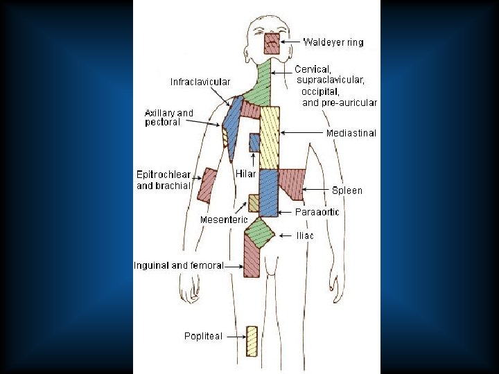Clinical Presentation • Painless lymphadenopathy – Contiguous spread between lymphoid regions – Usually begins supra diaphragmatically • Regional sub diaphragmatic disease < 10% • Symptoms associated with compressive effect – *mediastinal mass – Abdominal/inguinal • “B symptoms” – Wt loss > 10% over 6 months – Persistent fever >38. 2 – Drenching night sweats • Puritis