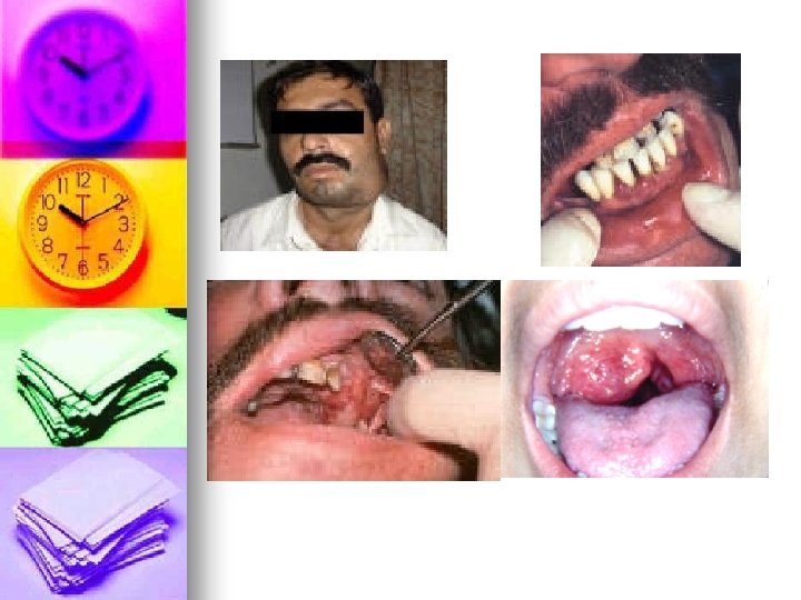 Clinical presentation n n n Neck- lymphadenopathy, ulcerated mass Oropharynx- enlarged tonsil, tongue base thickening Nasopharynx – mass, SOM Nose & paranasal sinuses- ulcerated destructive lesion –susp. NK/T cell Lymphoma (“midline lethal granuloma”), associated with EBV Thyroid - neck swelling, hoarseness, dysphagia, or neck pressure/tenderness Salivary glands- masses Base skull – cranial neuropathy, facial pain, hearing loss, vertigo, proptosis, or visual symptoms