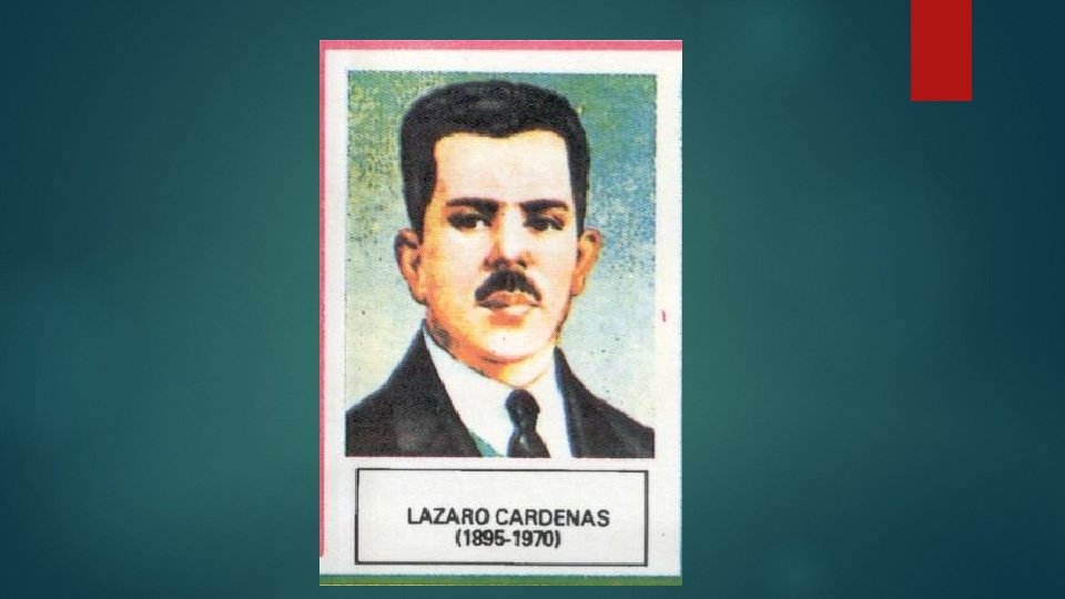 Lázaro Cárdenas del Río General y estadista mexicano, presidente de México del 1 de diciembre de 1934 al 30 de noviembre de 1940. Reforma agraria y la creación de los "ejidos" en el sector agropecuario mexicano; por la nacionalización de la industria petrolera y por haber brindado asilo político a exiliados españoles durante la guerra civil española.
