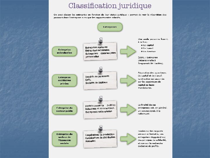 Structure d’une entreprise Services ou départements n Recherche et développement n Etudes n Production n n Marketing n Ventes Administratif et financier Ressources humaines Service juridique