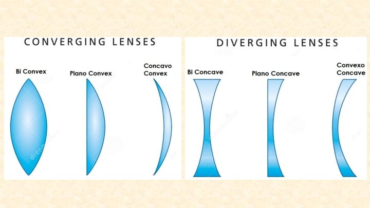 Lenses Convex Concave Plano Convex Bi Convex Concavo Convex Plano Concave Bi concave Convexo Concave