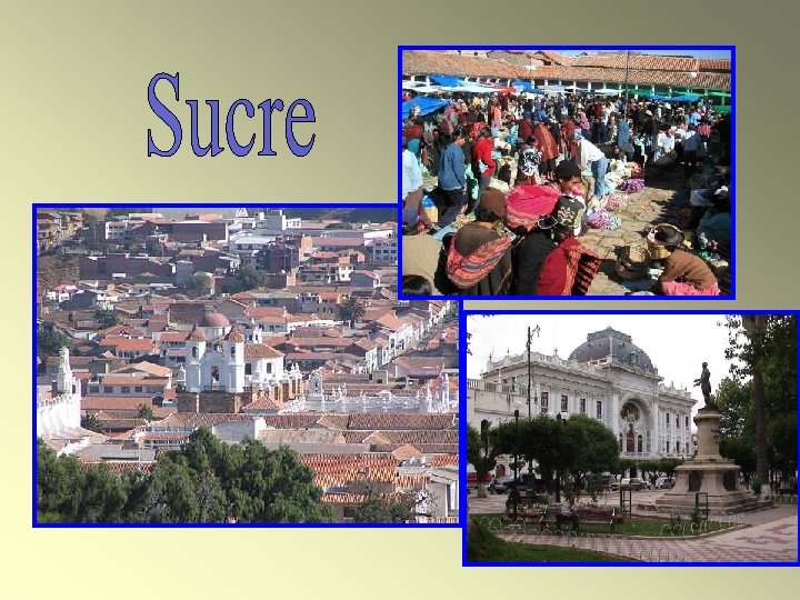 BOLÍVIA Hlavné mesto: Sucre, Sucre administratívne centrum La Paz v vnútrozemský štát, názov podla Simóna Bolívara - venezuelský bojovník za oslobodenie od španielskej nadvlády v plošina Altiplano, Altiplano jazero Titicaca, Titicaca Poopó v nerastné suroviny : cín, antimón, olovo, ropa, zemný plyn - len časť sa využíva v základ poľnohospodárstva: cukrová trstina, bavlník, citrusové plody, káva v chov lám, hovädzieho dobytka a oviec v nelegálne príjmy - pestovanie a vývoz koky