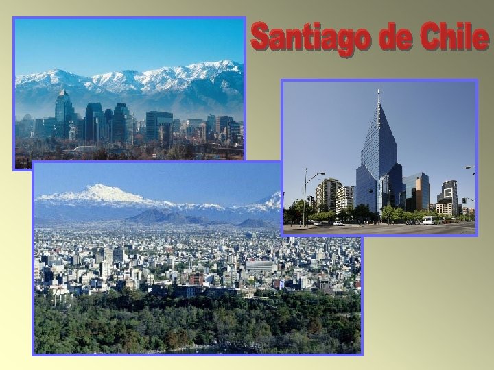 CHILE Hlavné mesto: Santiago de Chile Ï severojužný smer 4365 km, patrí mu Veľkonočný ostrov (cestovný ruch) Ï členité pobrežie, púšť Atacama najsuchšia púšť na Zemi Ï nerastné suroviny: rudy medi (vyskytuje sa tam štvrtina známych svetových zásob) a molybdénu, jód, ropa, zemný plyn, uhlie, ( uhlie časť sa vyváža a časť spracúva ) Ï hutníctvo farebných kovov Ï poľnohospodárstvo – sústredené do Stredočílskej doliny - hrozno, citrusy, jablká, figy, orechy (produkcia poľnohospodárstva nestačí, dovážajú sa najmä základné potraviny) Ï chov hovädzieho dobytku, chov oviec Ï rybolov (bohatstvo rýb zabezpečuje studený Peruánsky prúd. V ich vývoze je krajina na 4. mieste na svete) Hlavným hospodárskym odvetvím Chile je ťažba nerastných surovín Podobne ako vo väčšine juhoamerických štátov aj v Chile prevláda polovica hospodárskej produkcie krajiny pripadá na oblasť Santiaga, hlavného mesta štátu Hlavným hospodárskym odvetvím Chile je ťažba nerastných surovín Poľnohospodárstvo a priemysel sa viažu na centrálne údolie Ánd