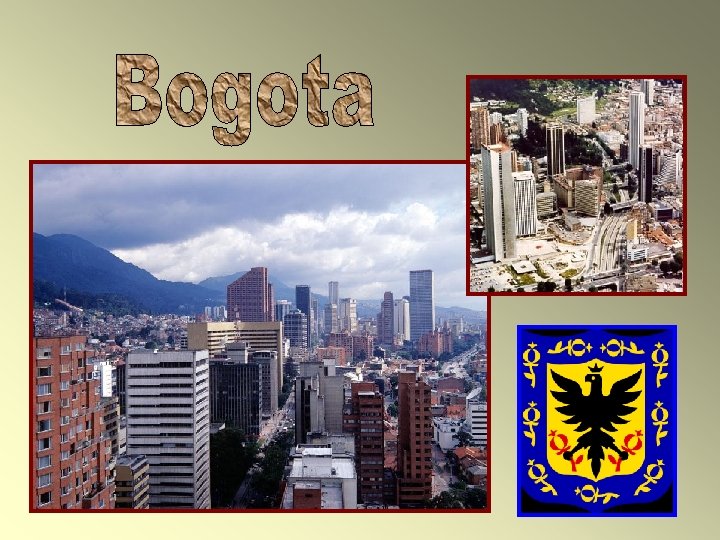 KOLUMBIA Hlavné mesto: Bogota (6, 5 mil. obyv. ) vo výške 2600 m Ø Andy - tri pásma Východná, Stredná, Západná Kordillera, obopínajú plošiny, Amazónska a Orinocká nížina Ø geologicky aktívne územie – zemetrasenia Ø nerastné suroviny: uhlie, ropa, farebné kovy, železná ruda, platina smaragdy Ø priemysel: spracovanie ropy, výroba textilu, potravín, železa a ocele ( sústreďuje sa do troch najvýznamnejších miest štátu Bogoty, Medellínu a Cali ) Ø najdôležitejšie poľnohospodárske plodiny: káva, banány, cukrová trstina, kakao, bavlník Ø vo vysočinách: zemiaky, ryža, kukurica, jačmeň obživa obyvateľstva Ø export - orchidey - národný kvet Kolumbie