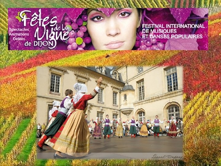 • Au fil des générations, au fil des modes, les Fêtes de la Vigne ont su conserver toutes les différences qui les imposent encore et toujours comme une manifestation référente, majeure, sur le plan international. • Authenticité, diversité, respect de nos traditions et de nos racines plurielles, les Fêtes de la Vigne sont indiscutablement un faire-valoir et un élément moteur du rayonnement de Dijon et de la Bourgogne. • Elles constituent un lien indestructible de solidarité et de fraternité entre les milliers de participants de dizaines de pays qui sont venus, pendant toutes ces années, des quatre coins de la planète, proposer au public leurs musiques, leurs traditions, leurs folklores. • En 2009, les Fêtes de la Vigne ont fêté leurs 60 ans ; l'occasion de célébrer au-delà de l'événement, un moment de pur plaisir, avec un plateau d'invités de prestige.