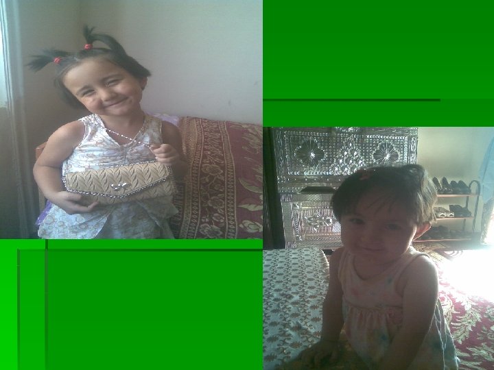 § J’ai deux soers. Ma soeur ainne s’apelle Sarvinoz. Elle est medcine. Elle a 27 ans. Elle est belle, aux yeux verts et aux cheveaux bruns. Elle est bonne et tres gentille. J’aime ma soeur! Elle a deune filles. Ce sont Madina et Muslima. Elle vont a’lecole maternelle.