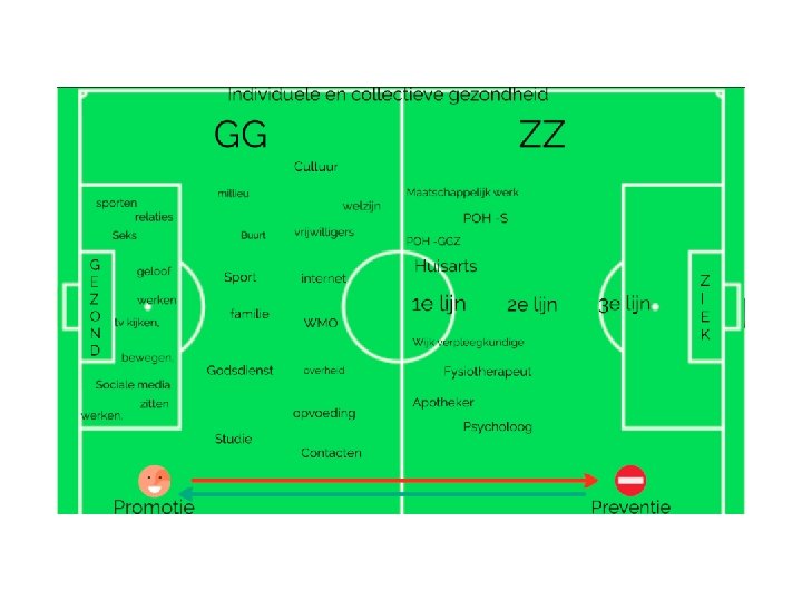 Gezondheidsbenadering Ziektebenadering Functioneren Subjectief: waarden Meer: ambitie Mens Handelen Onvoorspelbaar Groepsdoelen Promotie Probleem Objectief Minder: klacht Professional Behandelen Voorspelbaar Doelgroepen Preventie Advies