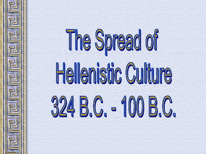 Greatest Accomplishment of the Hellenistic Age • Alexander the Great saved Greek Culture and spread their ideas to every new place he conquered. • The new culture that emerged was called “Hellenistic” culture, which means “Greek-like”. • All of the following are the legacies of this Hellenistic age….